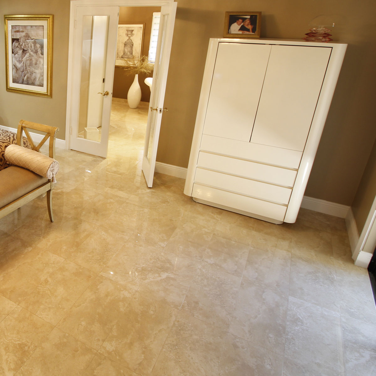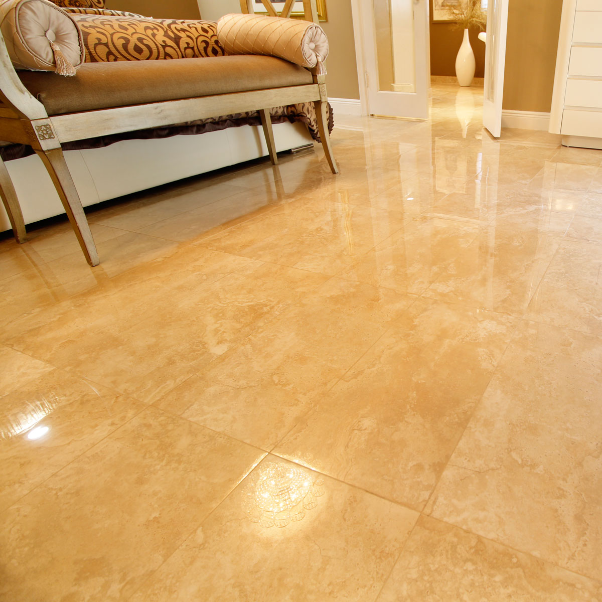 Polished Porcelain Travertine Style Floor